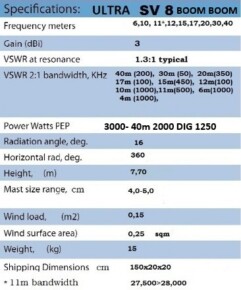 Vertical-Array is proud to present the self-supporting HF SV8 BOOM BOOM/ULTRA/PLUS vertical antenna