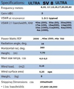 The SV8 is 7.70m high, bandwidth in 40m = ~200 Khz.